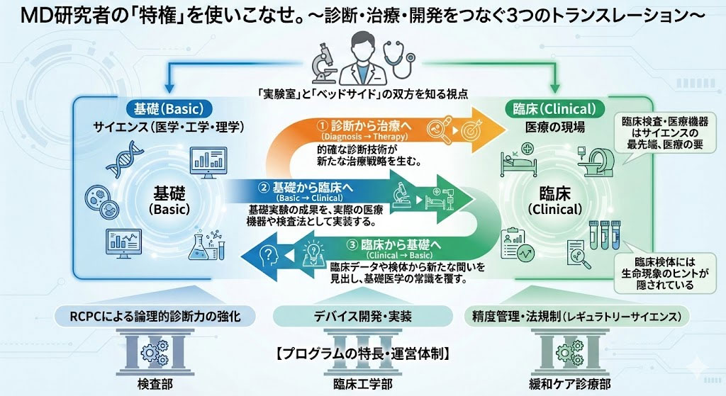 | ③ 臨床から基礎へ(Clinical to Basic) | 臨床データや検体から新たな問いを見出し、基礎医学の常識を覆す。 |